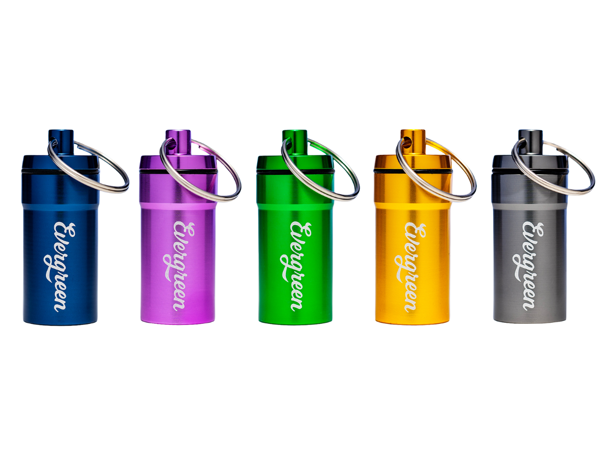 Evergreen’s Cannabis Storage Solution is a complete package for keeping weed fresh. The 11-fluid-ounce jar size works well to keep fresh and store up to an ounce of flower. The package includes everything else you could need to keep your weed fresh, such as a protective custom-fit silicone sleeve, an Evergreen Pod to provide humidity control and maintain your flower at the peak of freshness, the Evergreen Traveler keychain container, and a wet-erase marker to label the lid. of your cannabis storage containers.